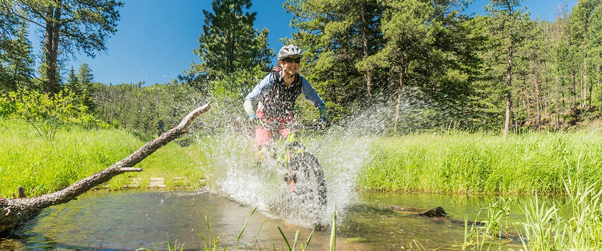• Diverse Terrain & Scenic Beauty: Experience Black Hills singletrack alongside doubletrack, gravel, and paved roads. Ride through dense Ponderosa pine forests, open meadows, and along pristine lakes and creeks, with opportunities for refreshing swims.